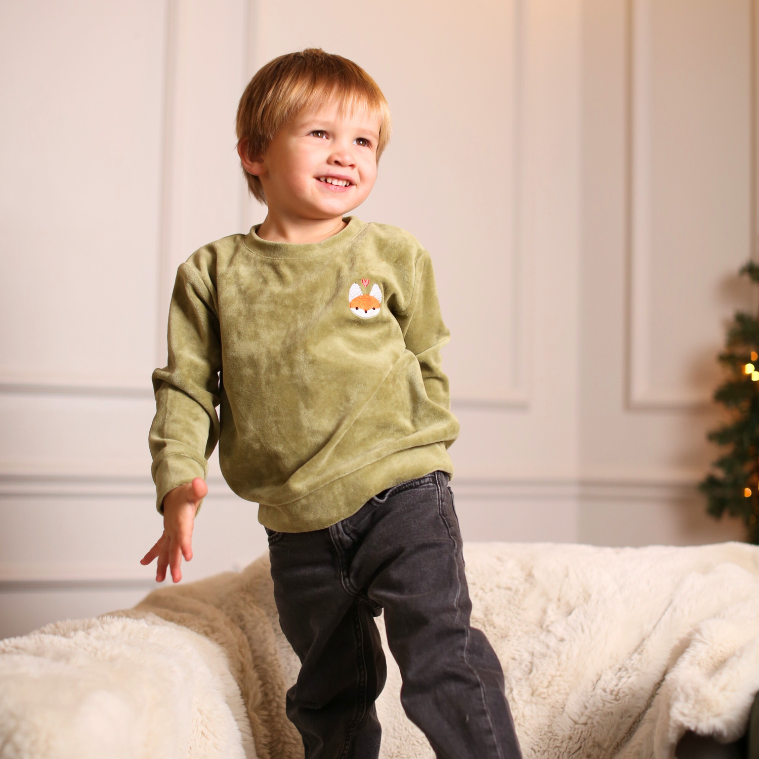 Zaļš samta džemperis ar Lapsas izšuvumu